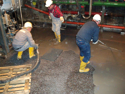 Das QZ-Stahlfaser-Dichtschichtsystem wird direkt auf der gesäuberten Betonunterlage aufgebracht. Eine Vorbereitung der Oberfläche der vorhandenen Bodenplatte zur Erzielung einer bestimmten Haftzugfestigkeit ist nicht erforderlich, da die Stahlfaser-Dichtschicht ohne einen flächigen Verbund zur Unterlage eingebaut werden kann. Die Dichtschicht wird lediglich punktuell auf der Betonunterlage verankert.