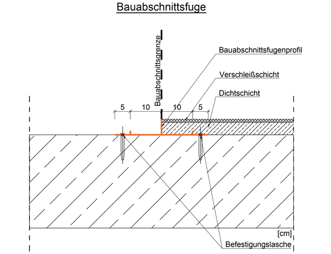 An die Betonunterlage für das QZ-Stahlfaser-Dichtschichtsystem besteht lediglich die Anforderung, dass sie tragfähig ist und ihre Festigkeit mindestens einem Beton der Festigkeitsklasse C20/25 entspricht. Für die Ausbildung von Ableitflächen kann das QZ-Stahlfaser-Dichtschichtsystem mit einem Oberflächengefälle von bis zu 2 % ausgeführt werden.